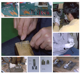 | 藪 敏郎 氏 メガネ作りに携わり30年。サンプル・型つくり・パーツ作り・調子とり(フィッティング)など、商品作りの要となる部分を手がけるメガネ作り一筋の職人。 自ら作り出す工具から、メガネの仕上げにいたるまで、藪の流儀に沿ってモノ作りの姿勢が貫かれています。その職人が長年温めてきた想いをモノ作りにぶつけ、自分のほしいメガネを製作。それが、藪敏郎氏の作り出す『SPMオーダーフレーム』です。 |